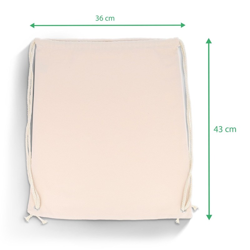 - Dimensions - The dimensions of the sports bag are approx. 330 x 450 mm and the filling volume approx. 12 litres. It is made of 100% polyester, has adjustable cords for comfortable carrying on the back or shoulder and weighs approx. 140 g