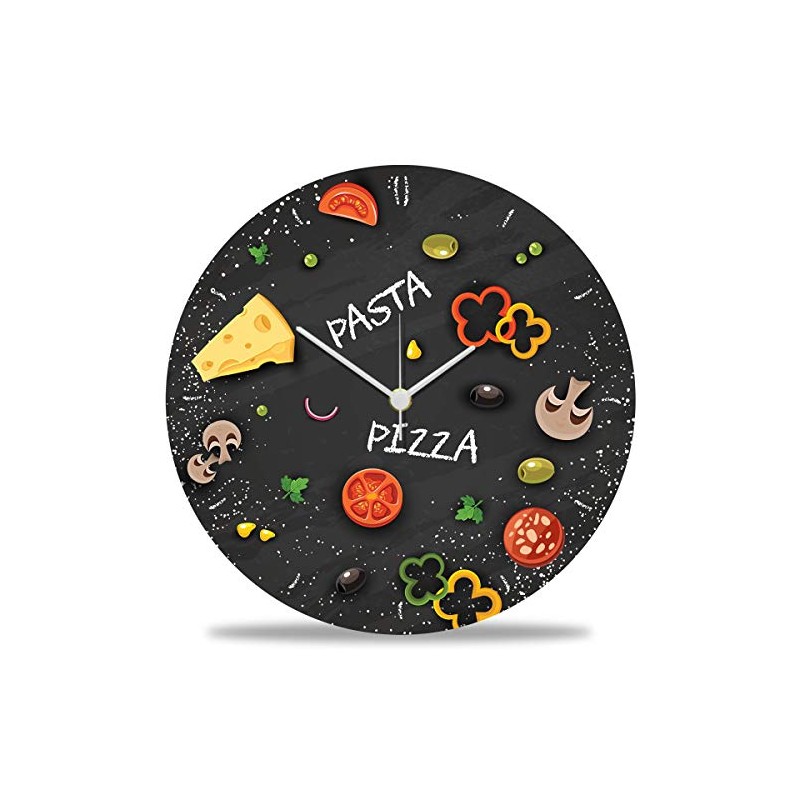 GRAVURZEILE Wooden Wall Clock Pizza & Pasta, 100% Silent, No Ticking, Completely Silent, 30 cm Diameter, Design Wall Clocks for Living Room, Bedroom and Kitchen