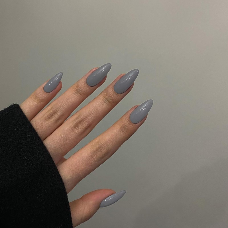 - Easy Short Glue on Nails Almond Shape: Our gray acrylic nails almond come to wear.Natural fit Technology makes these medium stick on nails for women almond super slim & super comfortable,the good texture ensure your press nails will never break or split!Only 5 minutes can put this glue nails on and look like you just got a manicure