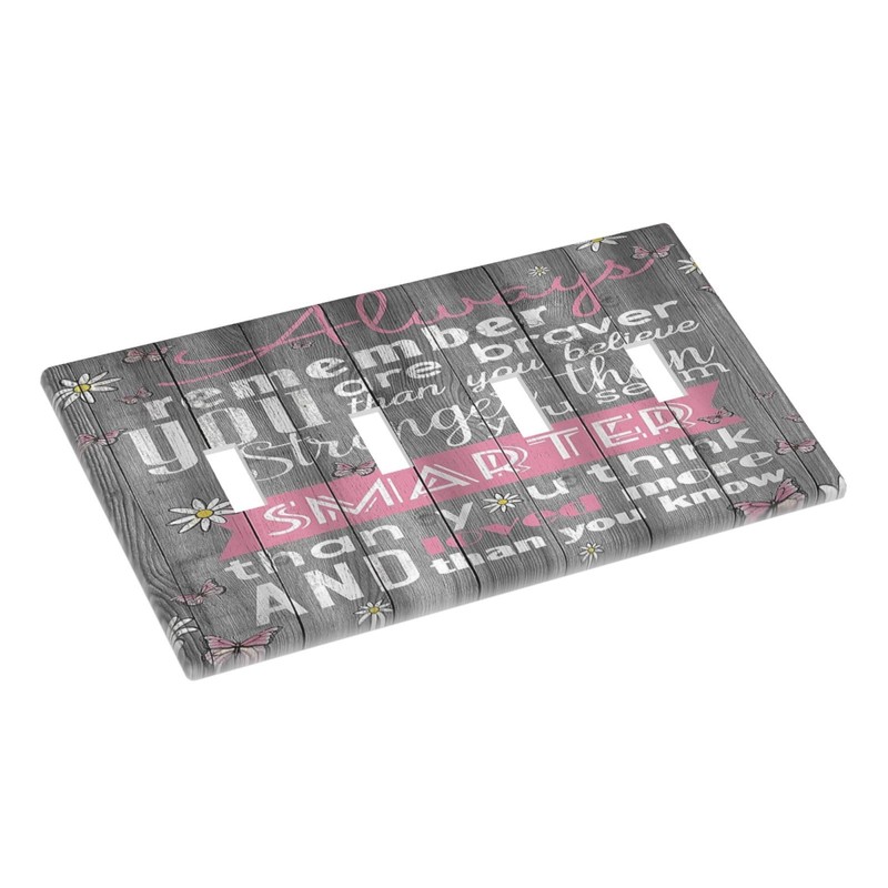 Gray Rustic Motivational Inspirational Quotes Wooden Plank 4 Gang Light Switch Plate Cover Quad Toggle Wall Plate Electrical Faceplate Decorative Switchplate for Bathroom Kitchen Bedroom Decor
