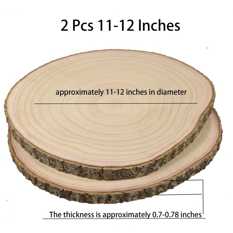 - PACKAGE CONTENTS: Set includes 2 natural wood slices, each uniquely crafted with its own distinctive grain patterns and characteristics