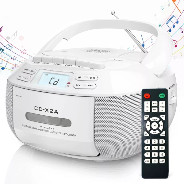 Cassette Player+AM/FM Radio : In addition to the traditional CD player, this boombox CD player adds with tape and radio functions. The Built-in cassette tape deck with recording function can meet those who have the habit of collecting tapes. At leisure,turn to the AM/FM mode that you can listen talk show,NFL,NPR,news on this cd boombox player.Pull out the antenna to enhance the reception and a LCD screen enables you to tune more visually and conveniently.A nice combo on this CD cassette player.