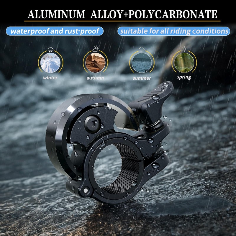 - Super Loud Sound: Our aluminum bike bell produces a clear and loud sound. The highly elastic spring inside ensures the sound is durable and stable, while the ergonomically designed striker provides a comfortable user experience. The bell can emit super loud sound, ensuring it can be clearly heard even in noisy environments, guaranteeing your cycling safety.
