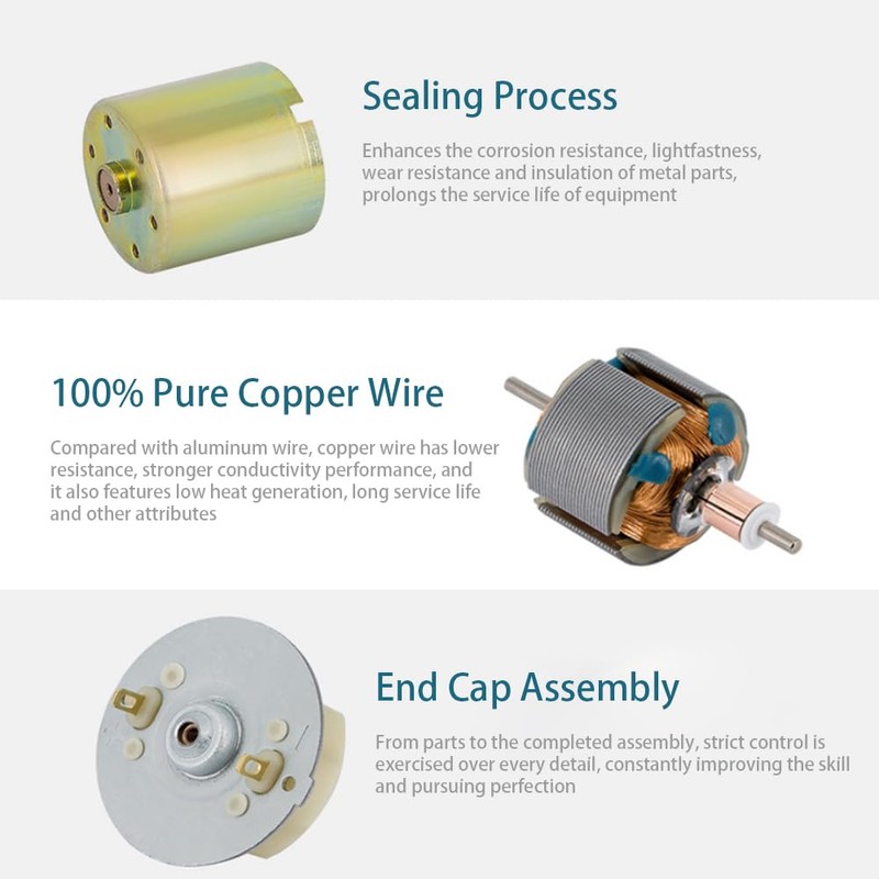 - 【PURE COPPER WIRE CORE ROTOR】:With precision winding technology, the geared motor power instant increased by 30%.