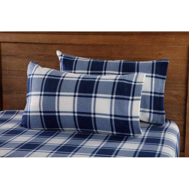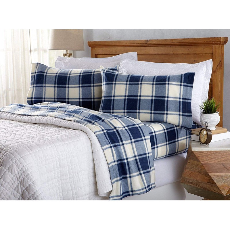 Great Bay Home 4 Piece Micro Fleece King Navy Plaid Sheet Set | Super Soft, Cozy Extra Plush Polar Fleece Bedding Sheets & Pillowcases | Microfleece Winter Sheets (King, Navy Plaid)