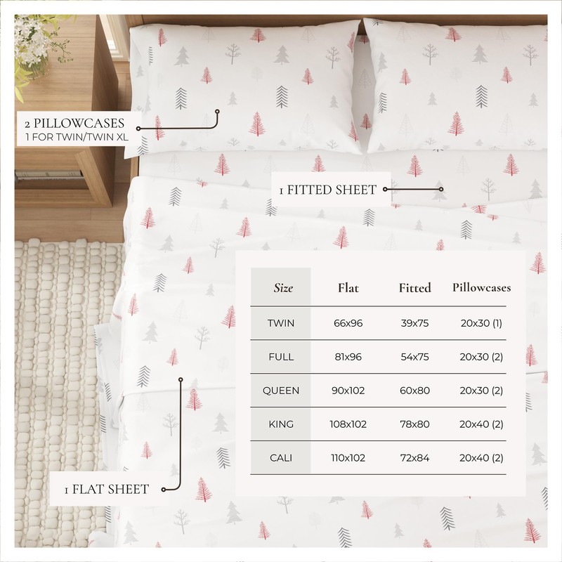 Great Bay Home Flannel Sheet Set Full Size - 100% Turkish Cotton, Double-Brushed, Printed Bed Sheets - Ultra-Soft, Cozy, 4-Piece Bedding Set (Winter Trees - Red)