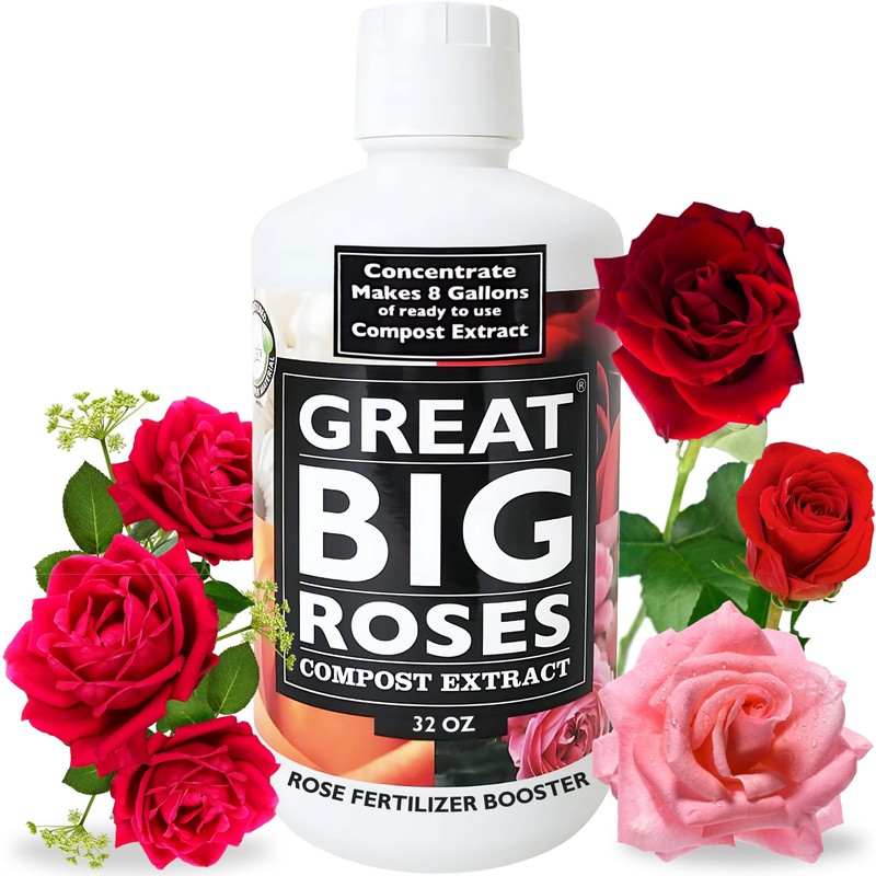 Great Big Roses – Soil and Rose Fertilizer Booster to Grow The Best Roses and Flowers; Rose Food Compost Extract for Rose Bush, 32 Ounce Concentrate (Makes 8 Gallons)