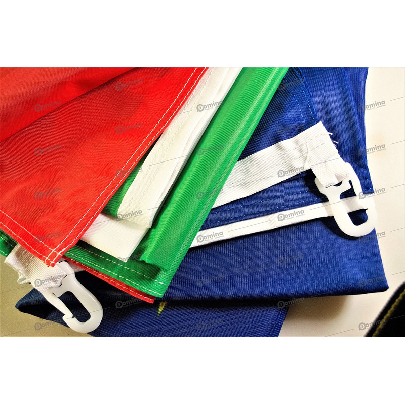 - Domina Fabbrica flags make all kinds of flags according to customer request, national or personalized sizes, printed on waterproof fabric, using calendered sublimation inks that guarantee brightness and durability. The flags come with all-round reinforcement seam and according to customer request with side pocket and straps, side band and eyelets, pocket at the top and other details.