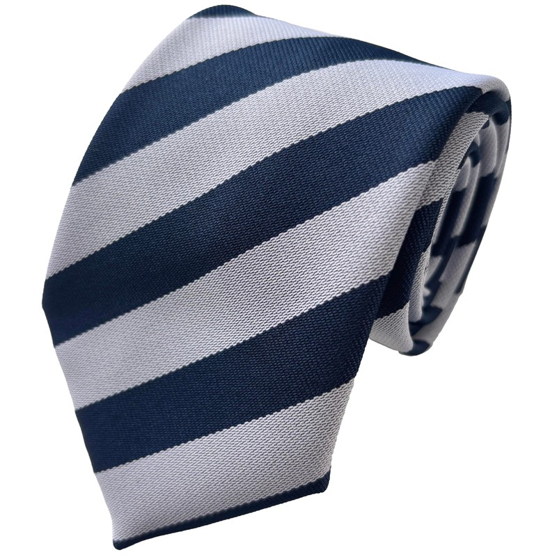 Great British Tie Club School Ties (23 Block Stripe Colour Variations) (White & Navy)