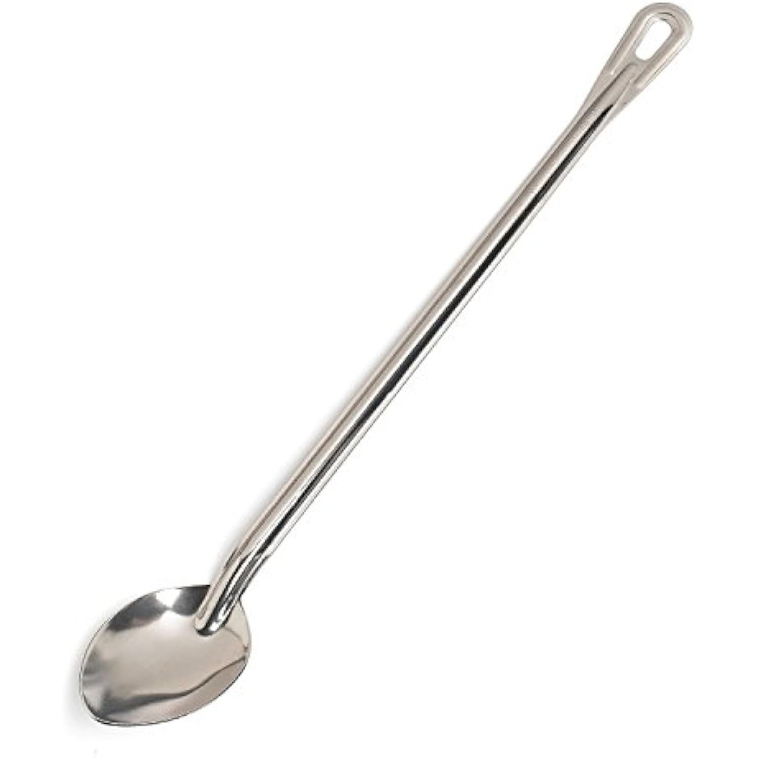 Great Credentials Brewing Spoon, Stainless Steel, 21-Inch Spoon This heavy-duty solid basting spoon serve many purposes in the kitchen is made of heavy-duty 18/8 stainless steel material. Its solid bowl surface allows for maximum liquid retention within the spoon bowl. Handle includes a notch that will prevent the spoon from slipping into the dish. Handle 17-inch in size. Thickness 1.5-mm. Measures 21-inch length over all. Cool Touch Handle: No