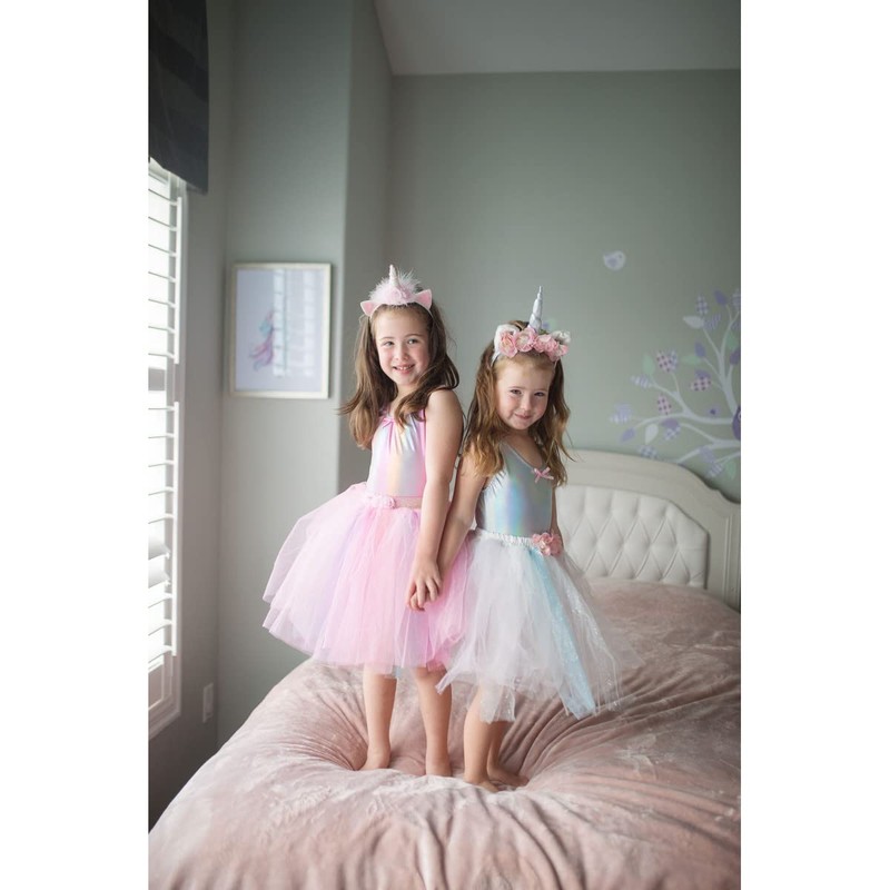The pink rainbow bodysuit is perfect as an accessory for a fancy dress skirt. Do you have a great skirt for fancy dress and no top yet? Then simply put on the rainbow bodysuit and the fancy dress costume is ready. Manufacturer's age: for children of approx. 3 - 4 years. Manufacturer material: 95% polyester, 5% spandex, except decoration. Important note! Only the bodysuit is included. Accessories shown are not included. Please note: Not suitable for children under 36 months. Choking hazard due to small parts.