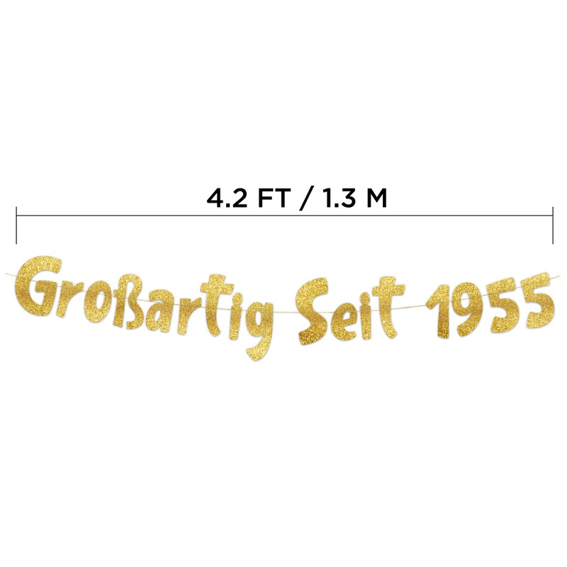 - Happy 70th Birthday! What better way to celebrate than with our high quality "Great Since 1955" Gold Glitter Banner. This is the perfect decoration to add a touch of classy decor and welcome your guests to the occasion.