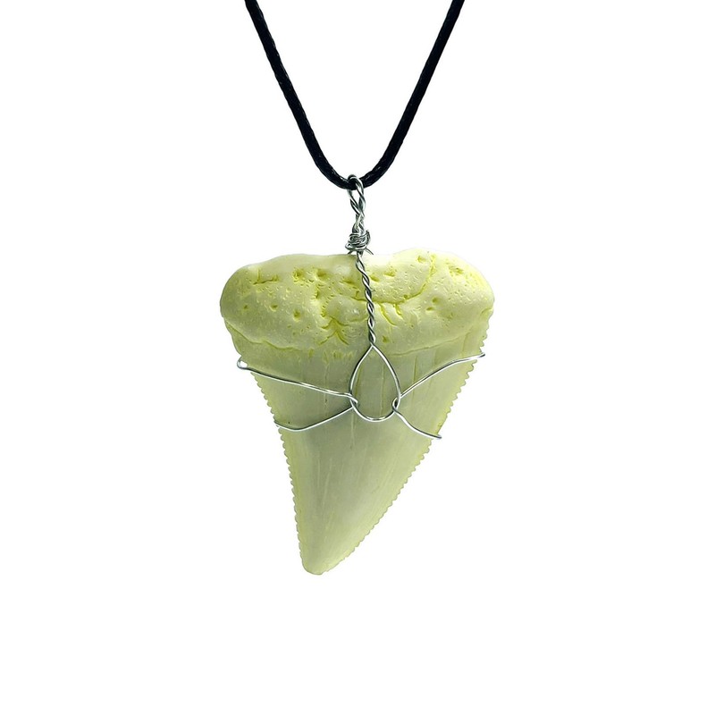 - Necklace made from a large great white shark tooth cast.