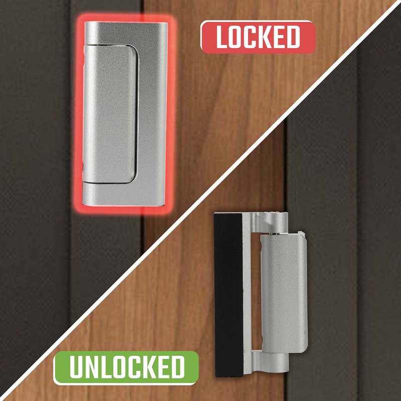 - Great DesignFeatures a spring-loaded, childproof and tamper-resistant design. High-quality aluminium material provides higher safety than traditional door locks to protects against unauthorized entry.