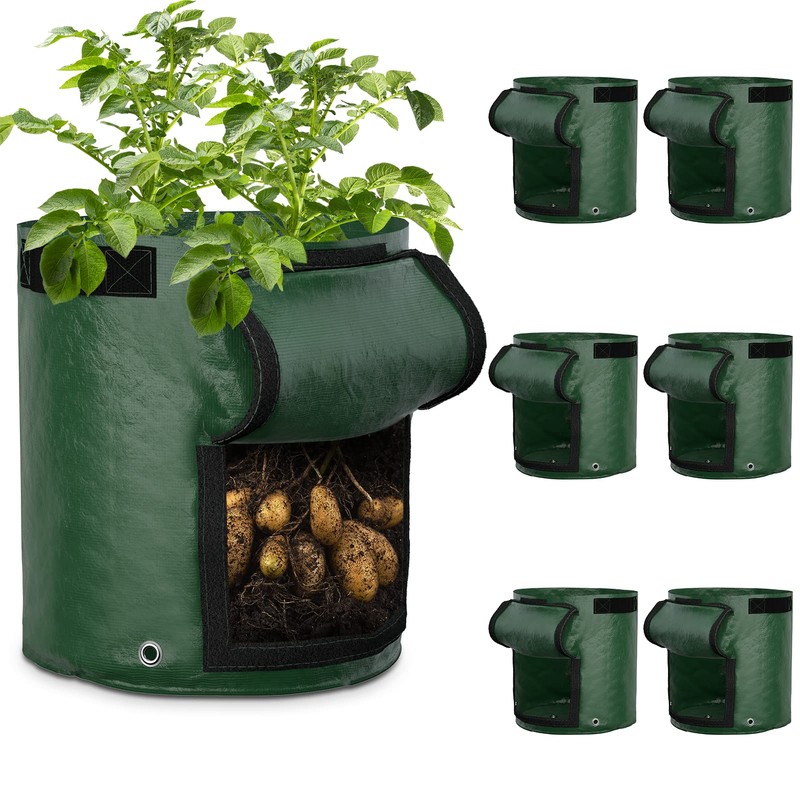 GreatBuddy 7 Gallon Potato Grow Bags 6-Pack, Thick PE Fabric Pots for Plants, Harvest Windows & Sturdy Handles, Labels Included, Green