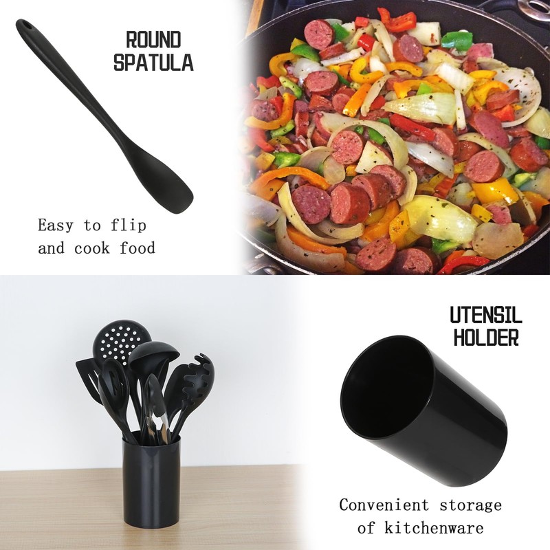 • EASY STORAGE: All tools has a hanging hole at the end of the handle and also comes with a holder for kitchen tools storage and space saving.