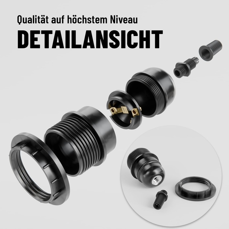 - LAMPENFASSUNG E27 mit Gewinde - Aufsteckkappe mit Innengewinde M10x1 - Fassung E27 ideal fr Tischlampe, Stehlampe, Deckenlampe oder Pendellampe