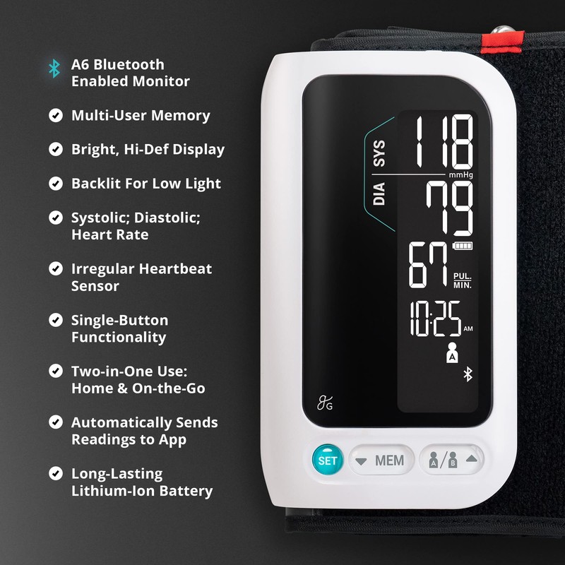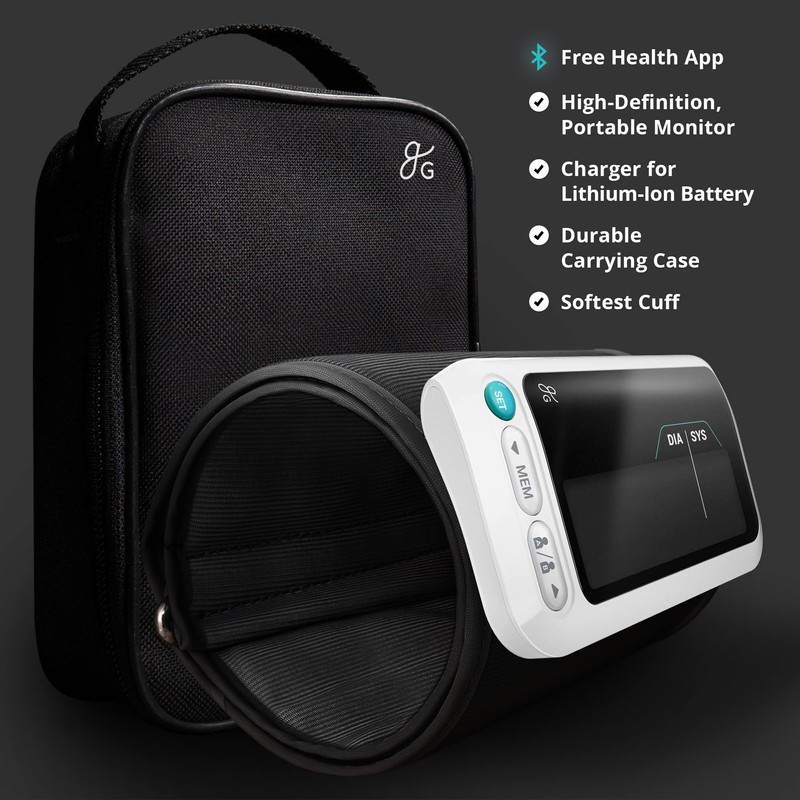 - Everything You Need: Greater Goods' smart home blood pressure monitor includes all necessary components for convenient heart health tracking. It ensures precise on-the-go monitoring for high blood pressure, supporting two users and storing unlimited readings on our iOS and Android app.