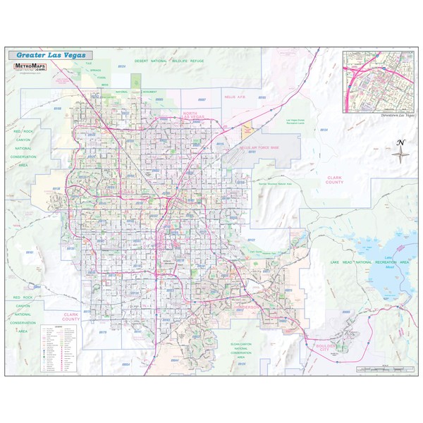 Greater Las Vegas-Clark County Detailed Region Wall Map *ZIP Codes* Laminated 45"x36"