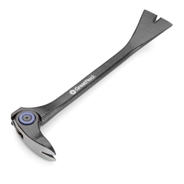 The GreatNeck 70012 8" multi-function nail Puller and pry bar is truly "multi- function" in every sense of the Word. The perfect tool in a tight spot or a pinch, the 8" multi-function nail Puller and pry bar features a 4-position ratcheting claw that adjusts positions to remove nails in hard to reach places, saving you time, effort and stress! by simply pushing a button, the head adjusts to four different angles. The drop forged steel head also features a smooth hammer face for hammering nails with force. On the other end, a chiseled-edge pry bar gets into the tightest of places, while a centrally-located blade slot smoothly removes smaller nails. The Greatneck70012 8" multi-function nail Puller and pry bar features a lifetime warranty.