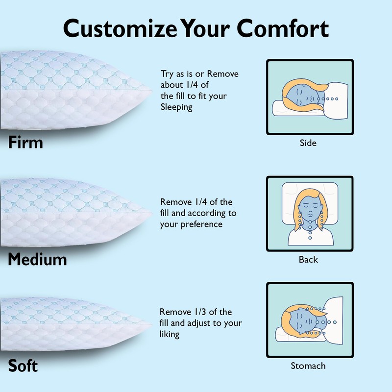 - ππ¨π¦π§π’π ππππππ: These adjustable sleeping pillows can be set to your desired height. You can add or subtract the required foam from the pillow to adjust it perfectly.
