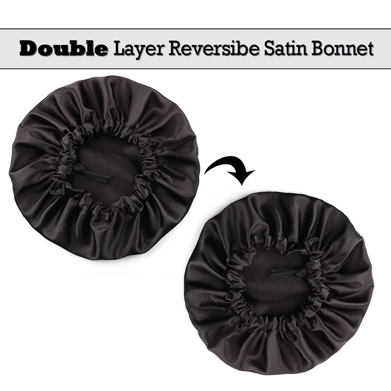 greatremy Gorro de dormir de satén para niños, doble capa, suave y elástico, capó de pelo natural de satén con cordón ajustable para niñas y niños pequeños que duermen (reversible negro)