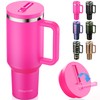 Greatyos 40 oz Tumbler with Handle and Flip Straw Lid - Upgraded Insulated Traveler Tumblers with Lids Straws Vacuum Leak Proof Stainless Steel 40oz Cup Mug Gifts for Men Women Him Her (Camelia)