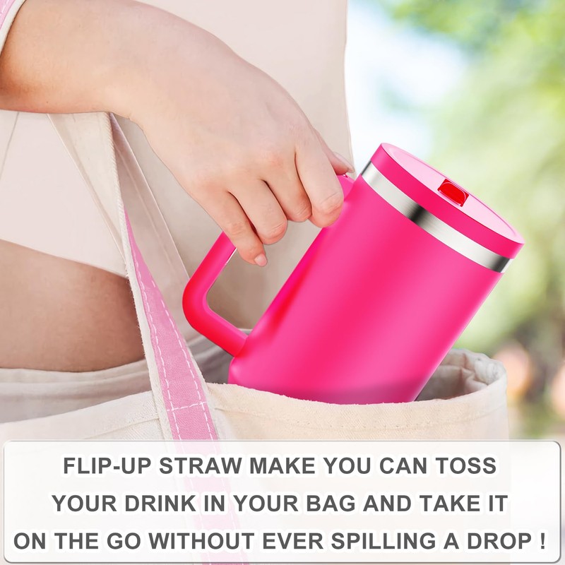 - STAY HYDRATED ALL DAY - Power you through your longest days with this large tumbler with handle and flip straw lid that holds 40 oz of beverage. Perfect for drinking water, smoothies, tea, or iced coffee. Just fill it up and get on with your day. Fits just about any car cup holder, take us with you wherever you go!