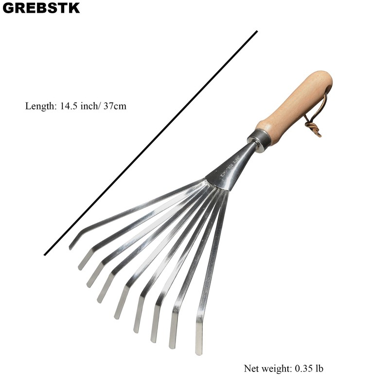 GREBSTK Hand Rakes Stainless Steel Beech Handle Soil Tille Garden Shrub Rake Small Leaf Rakes for Sweep Leaves & Loose Debris in Garden, Lawns, Yards, 14.5", 9 Tines Fan Lawn Leaf