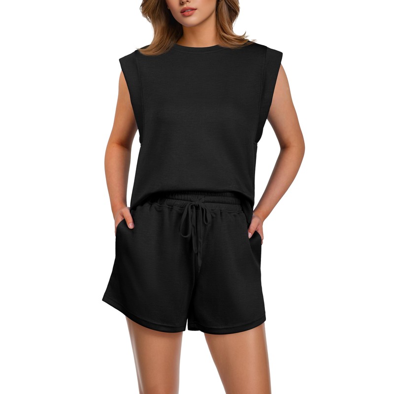 - DETAILS:The summer two piece set consists of a sleeveless top and high-waisted shorts, the loose fit makes it inclusive to the figure and suitable for any body type. Round neck cap sleeve women's top has a thoughtful design under the armpits to prevent exposure, allowing you to move your arms freely. Elastic waist shorts, easy to put on and take off. Two side pockets, easy to carry small items.