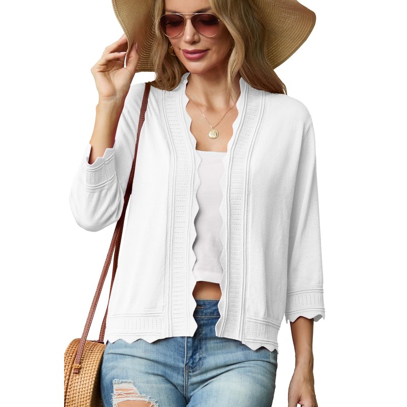- DESIGN & STYLE: Women's cardigan with 3/4 sleeve, open front design, wave ribbed cuffs and hem, cute and elegant