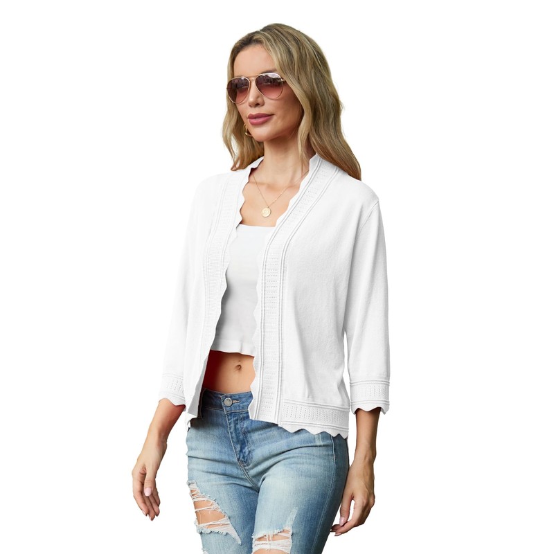 - DESIGN & STYLE: Women's cardigan with 3/4 sleeve, open front design, wave ribbed cuffs and hem, cute and elegant