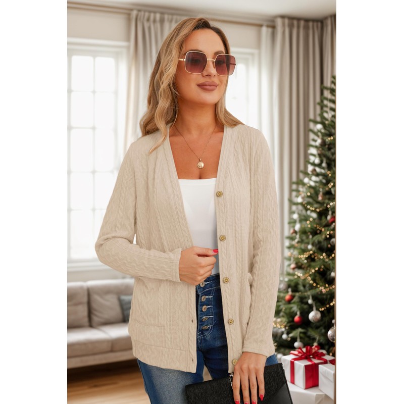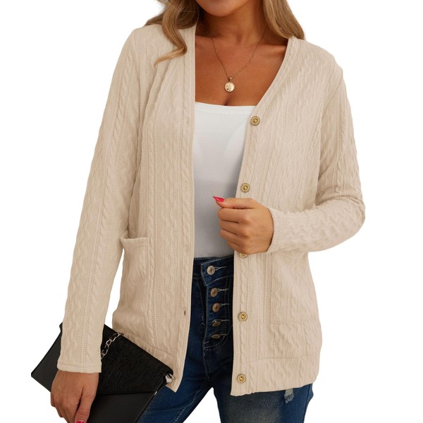 GRECERELLE Womens Lightweight Cardigan Sweater Long Sleeve Button Down Ribbed Knit Outerwear Open Front Tops with Pockets Apricot-XL