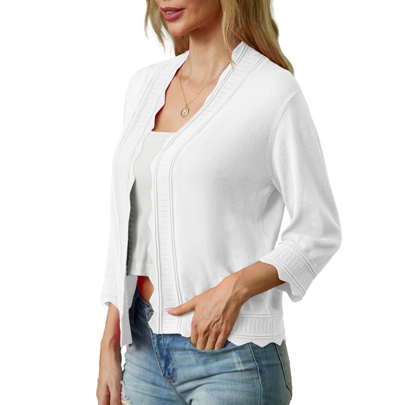 GRECERELLE Womens Summer Cardigan Knit Jumpers Shrugs Ladies Lightweight Soft Casual Scalloped Edges Cardigans for Dress Summer Evening Wedding (White, S)