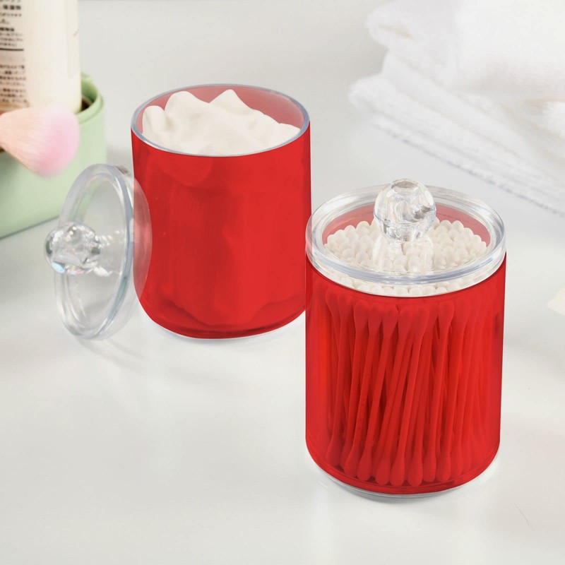 Gredecor 2 Pack Qtip Holder Clear Red Apothecary Jars with Lids Plastic Acrylic Bathroom Jars Vanity Countertop Canister Storage Organizer for Cotton Ball,Swabs,Pads,Floss