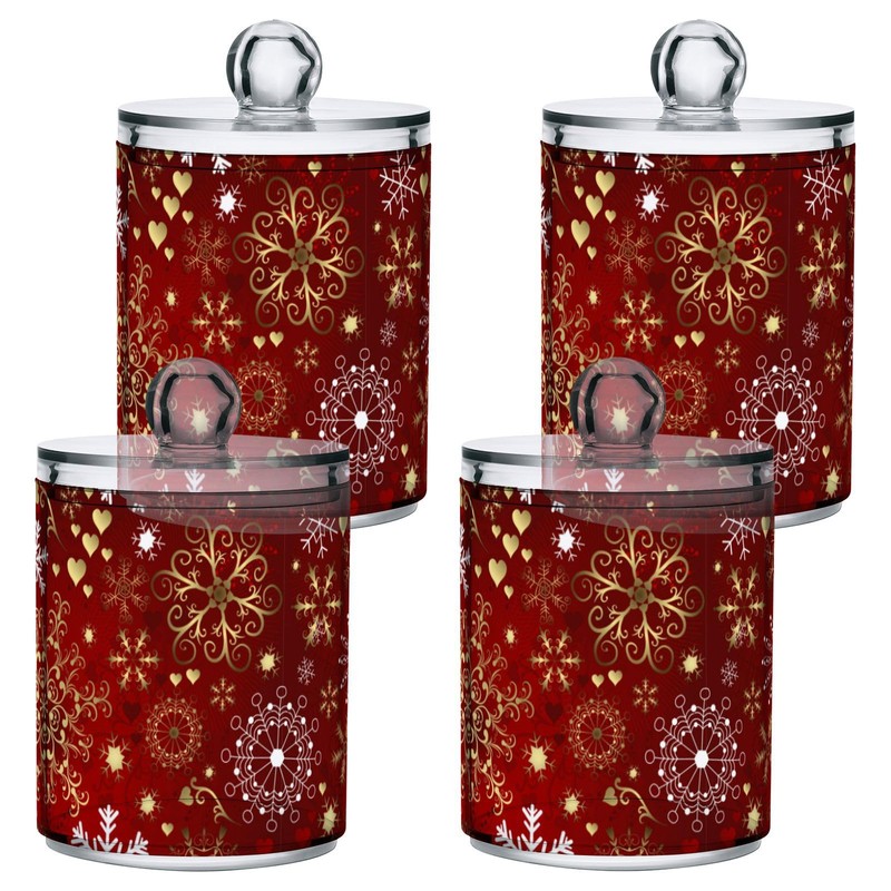 Gredecor Christmas Winter Qtip Holder Dispenser 2 Pack Gold and White Snowflakes Apothecary Jars with Lids Bathroom Vanity Countertop Canister Storage Organizer for Cotton Ball,Swabs,Pads,Floss