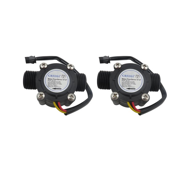 GREDIA 1/2" Water Flow Sensor Food-Grade Switch Hall Effect Flowmeter Fluid Meter Counter 1-30L/min (Pack of 2)