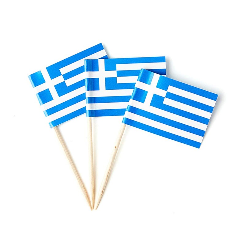 Package - 100 pcs Greece toothpick flags.Double-sided printing.