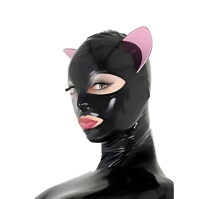 GREEFEI Latex Hood Mask with Cat Ears, Natural Rubber Mask with Nostril Opening for Breathing, Handmade Accessories, Unisex, S