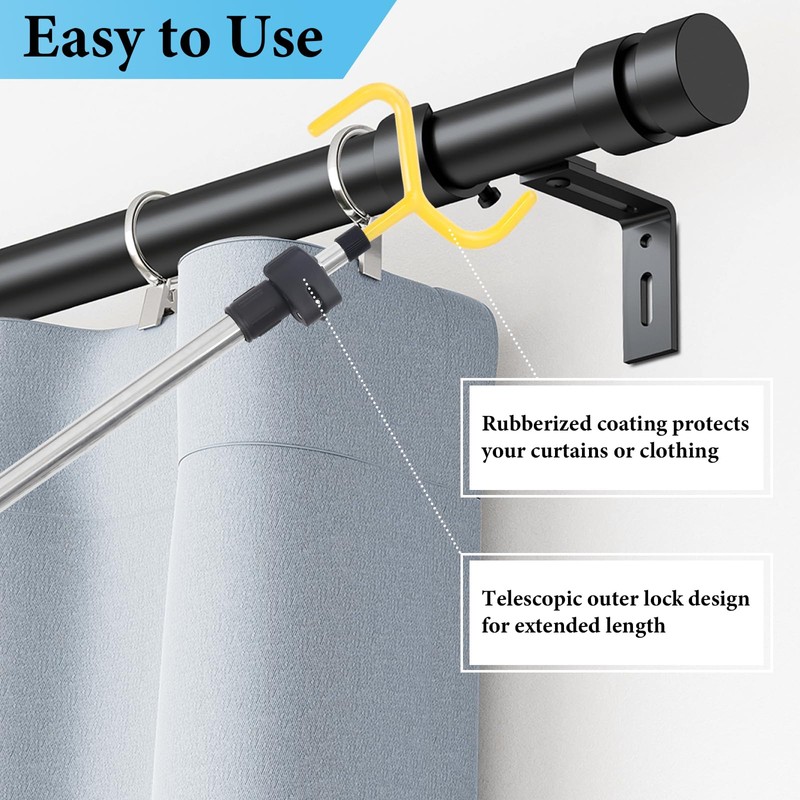 - TELESCOPIC DESIGN: The telescopic curtain opener stick is equipped with telescopic counter-locking device, which can firmly telescope the extension part, not easy to loosen and fall off, and can better keep its stability during use