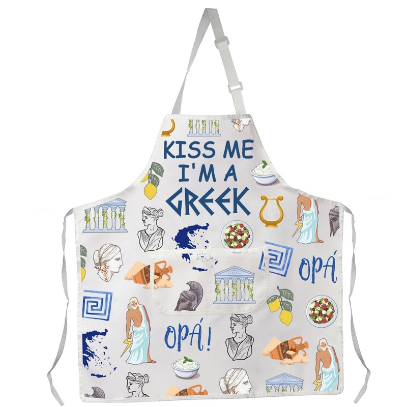 Greek Cooking Apron Kiss Me I'M A Greek Kitchen Apron Greece Kitchen Accessories Housewarming Apron with Pocket (I'M A GREEK apron ca)