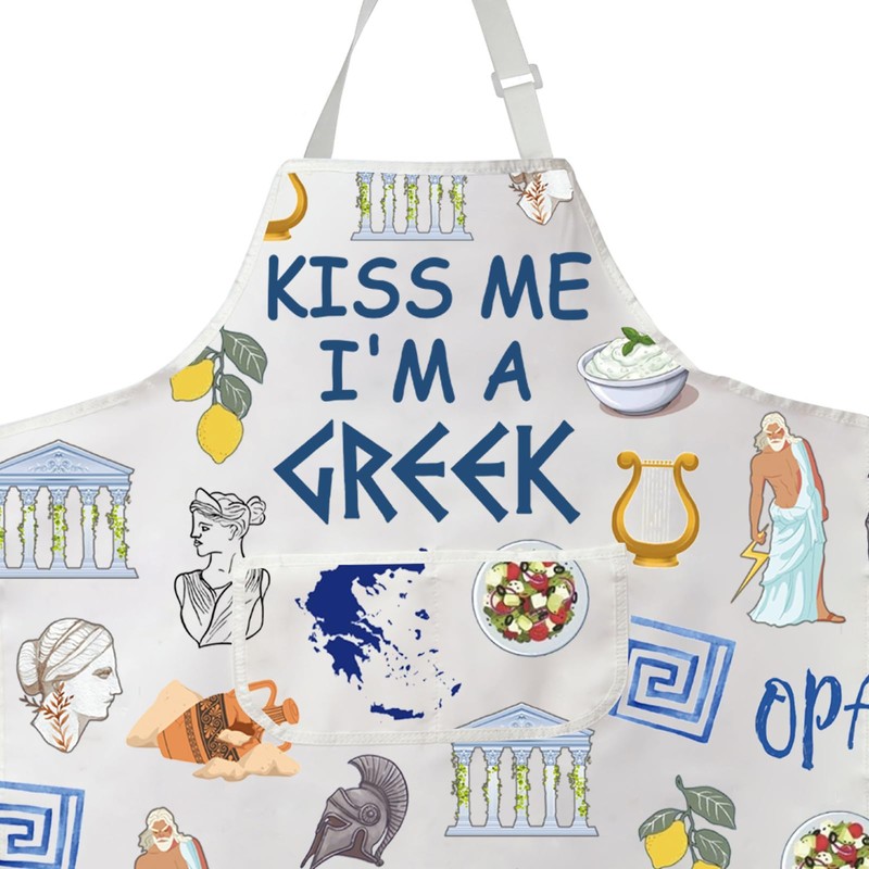 Greek Cooking Apron Kiss Me I'M A Greek Kitchen Apron Greece Kitchen Accessories Housewarming Apron with Pocket (I'M A GREEK apron ca)