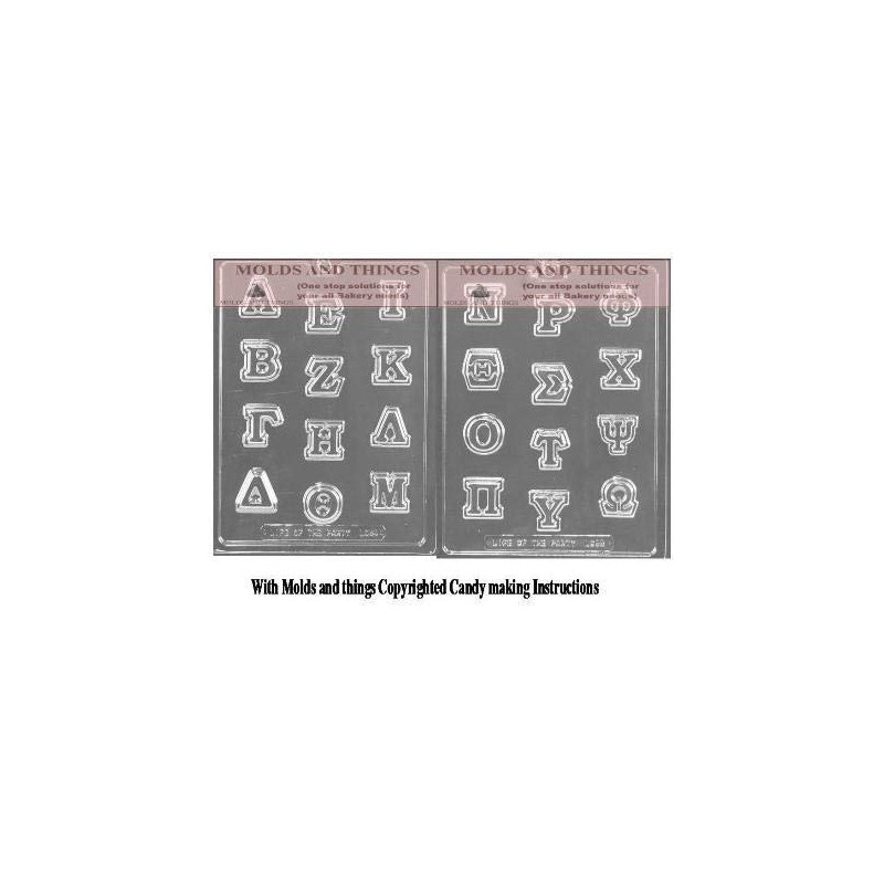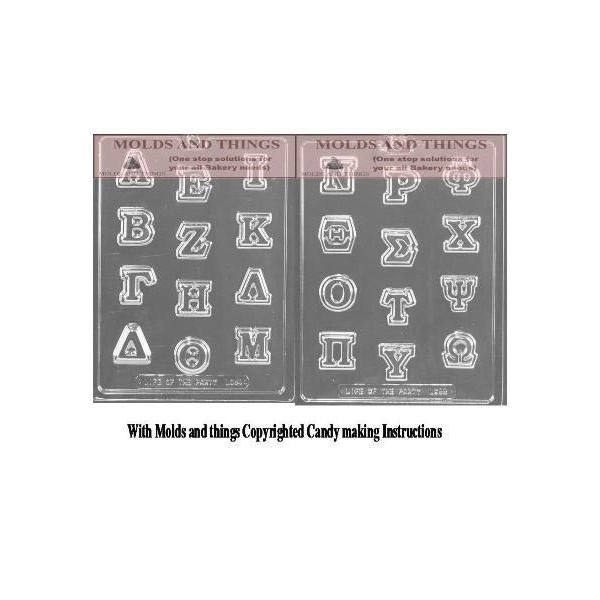 Greek Letters Chocolate Molds With Copyrighted Candy Making Instruction