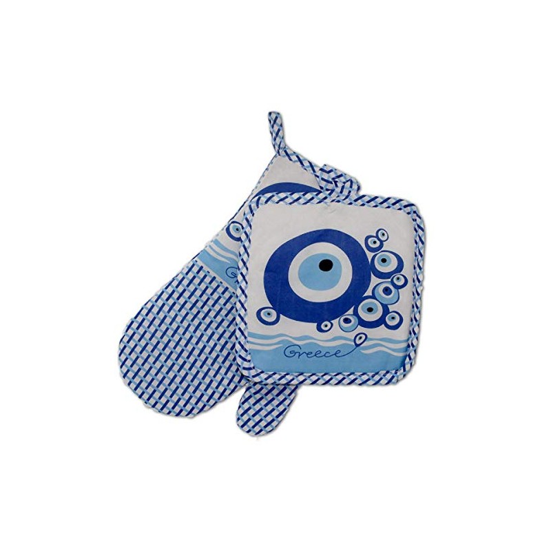 Greekshops.com Decorative Oven Evil Eye Mitt and Potholder 2 pc. Set.