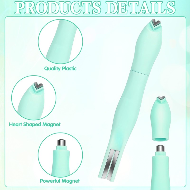Green 3-in-1 Cat's Eye Magnetic Pen, Versatile Magnet Tool for Cat Eye Gel Polish Heart Shaped Round Multifunctional Accessories for Studio Home DIY