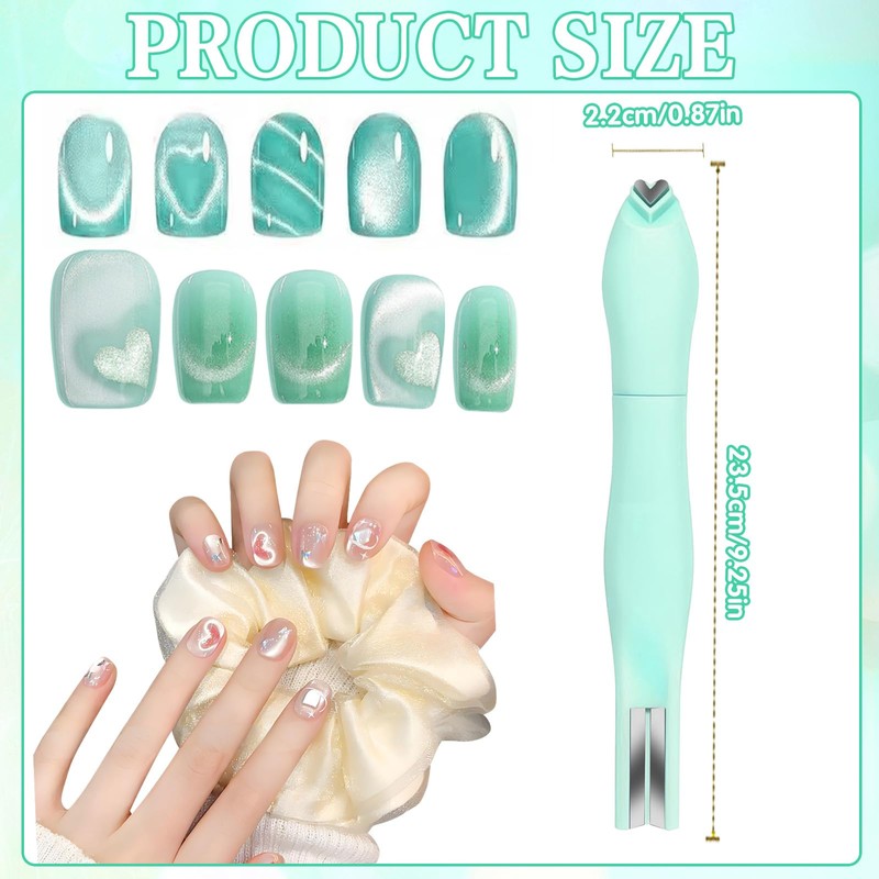 - 【Powerful Magnetic Force】This 3-in-1 nail magnet has three dedicated heads - heart, round and square, allowing you to create a variety of patterns such as charming hearts, French manicure tips and geometric patterns.Easily create stunning cat-eye manicures with our cat eye magnet. This tool features a sturdy magnetic design that ensures fast and precise results, creating mesmerizing patterns in seconds.