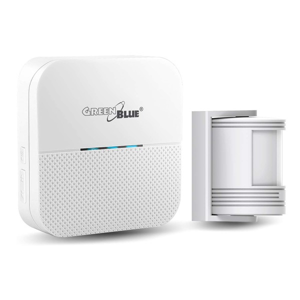 Green Blue GB212 Wireless Bell with PIR Motion Sensor Continuity Sensor Wireless Bell Wireless Socket Receiver 52 Melodies up to 120 m Doorbell
