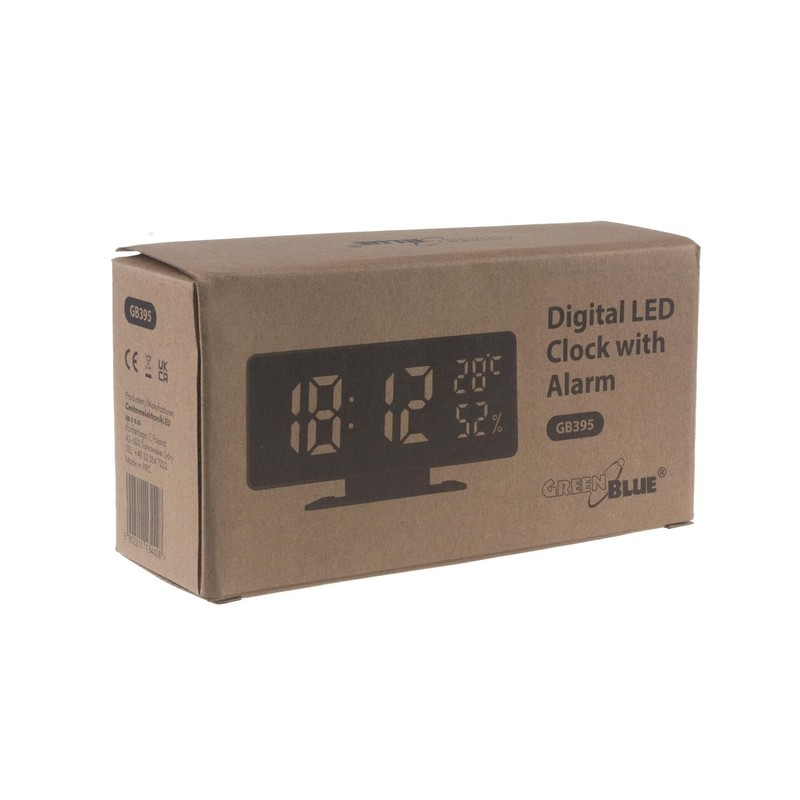 Green Blue GB395 Digital Alarm Clock with Thermometer and Hygrometer Function, 3 Alarms/Snooze Function, Digital Clock with Temperature Display and Humidity Display