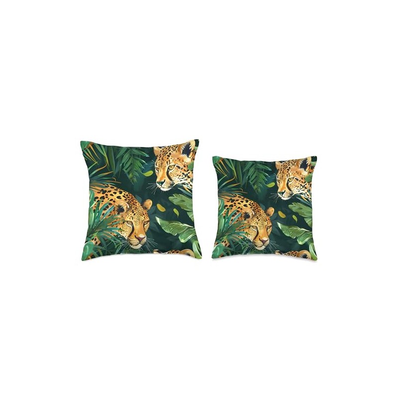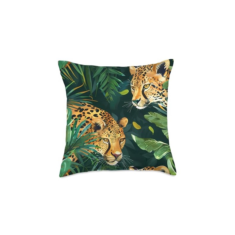 Green Bohemian Tropical Cheetah Kiss Pattern Decor Throw Pillow
