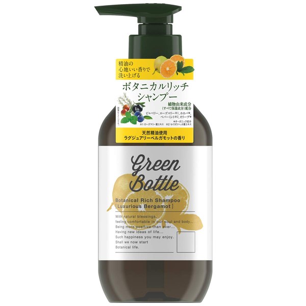 Green Bottle Botanical Rich Shampoo (Luxury Bergamot Scent) 490ml (x1)